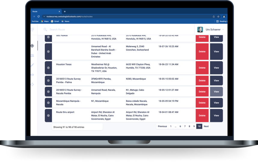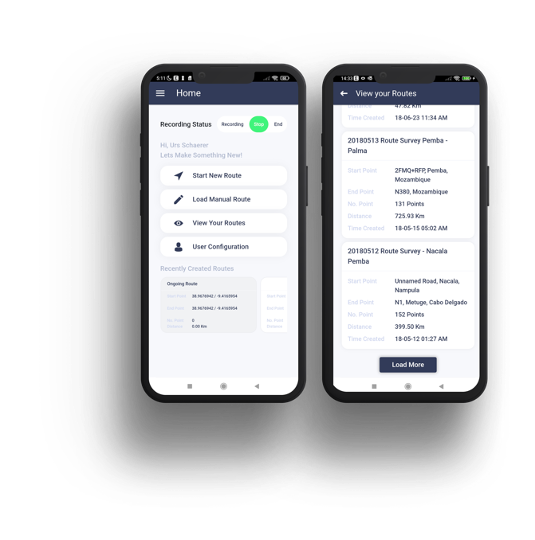 You have access to all your manual routes in the mobile apllication. Select the route and the data will be downloaded in to the mobile application.