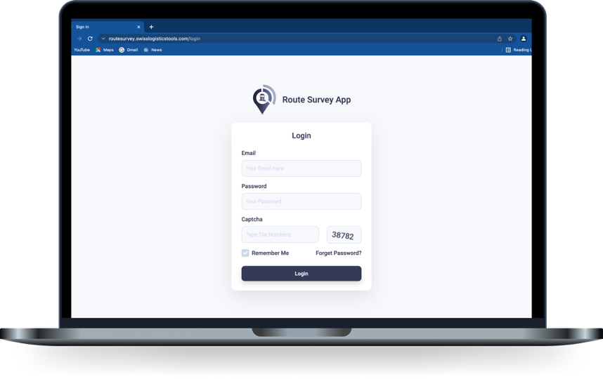Use the user name and password provided in the e-mail youur received after signing up for the route survey app. Please check the spam folder if you did not receive the email.