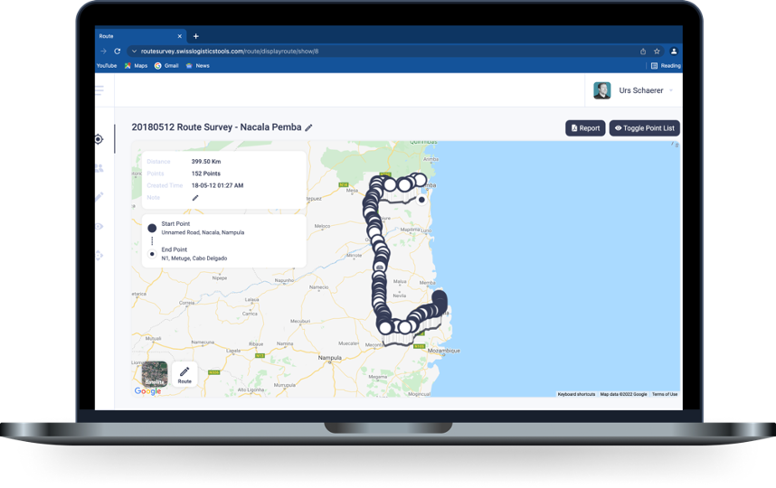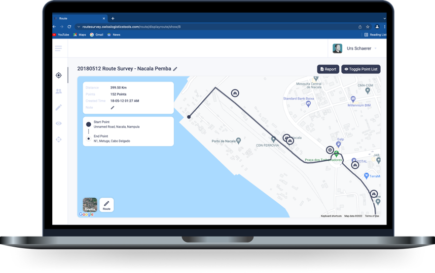 The route will be dispayed in the background of the routesurvey and helps to navigate.